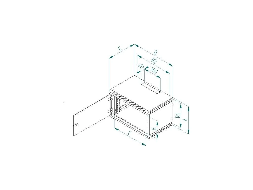 Presné rozmery a ďalšie technické údaje sú uvedené nižšie (hodnoty R1 a R2 označujú vzdialenosť montážnych otvorov na zavesenie rozvádzača na stenu). - Maximálne zaťaženie skrinky je 30 kg.