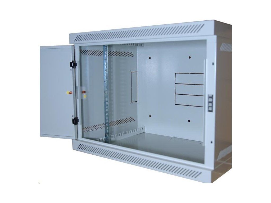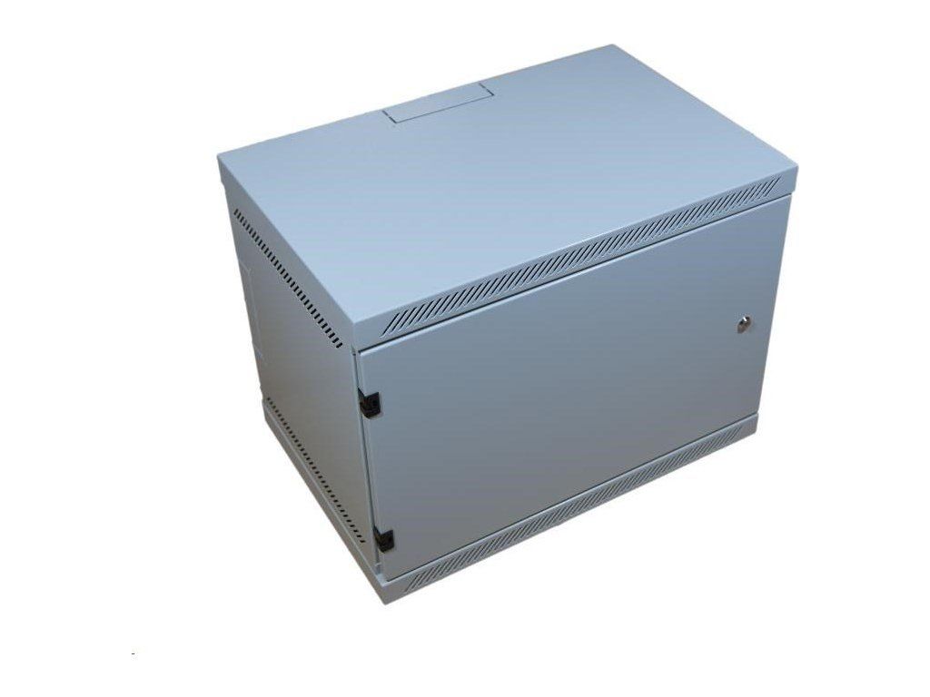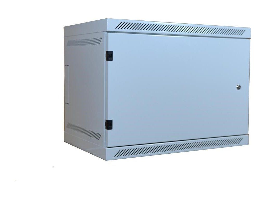 19" nástenná skriňa LEXI 9U, plné dvere, uzamykateľná, antivandal, hĺbka 400 mm, nosnosť 60 kg, sivá