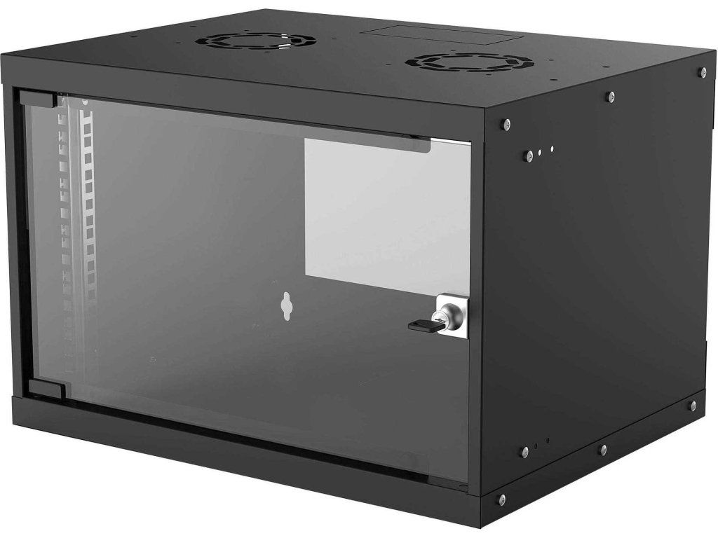 19" základná nástenná skrinka 6U, hĺbka 400 mm, kryt s krytím IP20, balená na plocho, čierna -Ideálna pre 19" rackové aplikácie -Trieda ochrany: IP20 -Maximálne statické zaťaženie 50 kg -Odklopné predné dvere -Striedavo valcovaná, pozinkovaná oceľ SPCC s max.hrúbka 2 mm - Dodáva sa v plochom balení.
