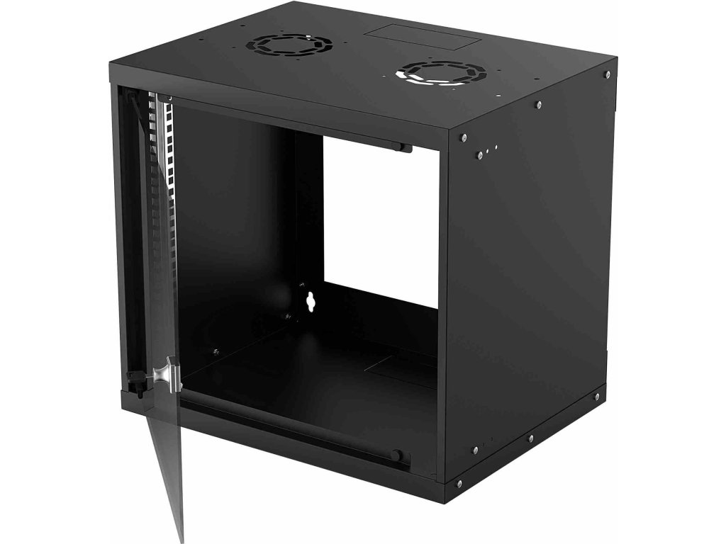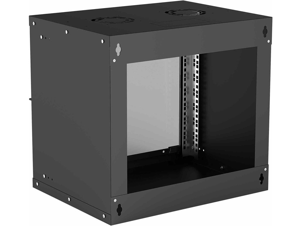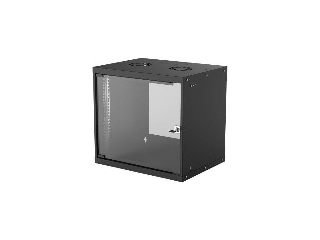 19" základná nástenná skrinka 9U, hĺbka 400 mm, kryt s krytím IP20, balená na plocho, čierna -Ideálna pre 19" rackové aplikácie -Trieda ochrany: IP20 -Maximálne statické zaťaženie 50 kg -Odklopné predné dvere -Stálo valcovaná, pozinkovaná oceľ SPCC s max.hrúbka 2 mm - Dodáva sa v plochom balení.