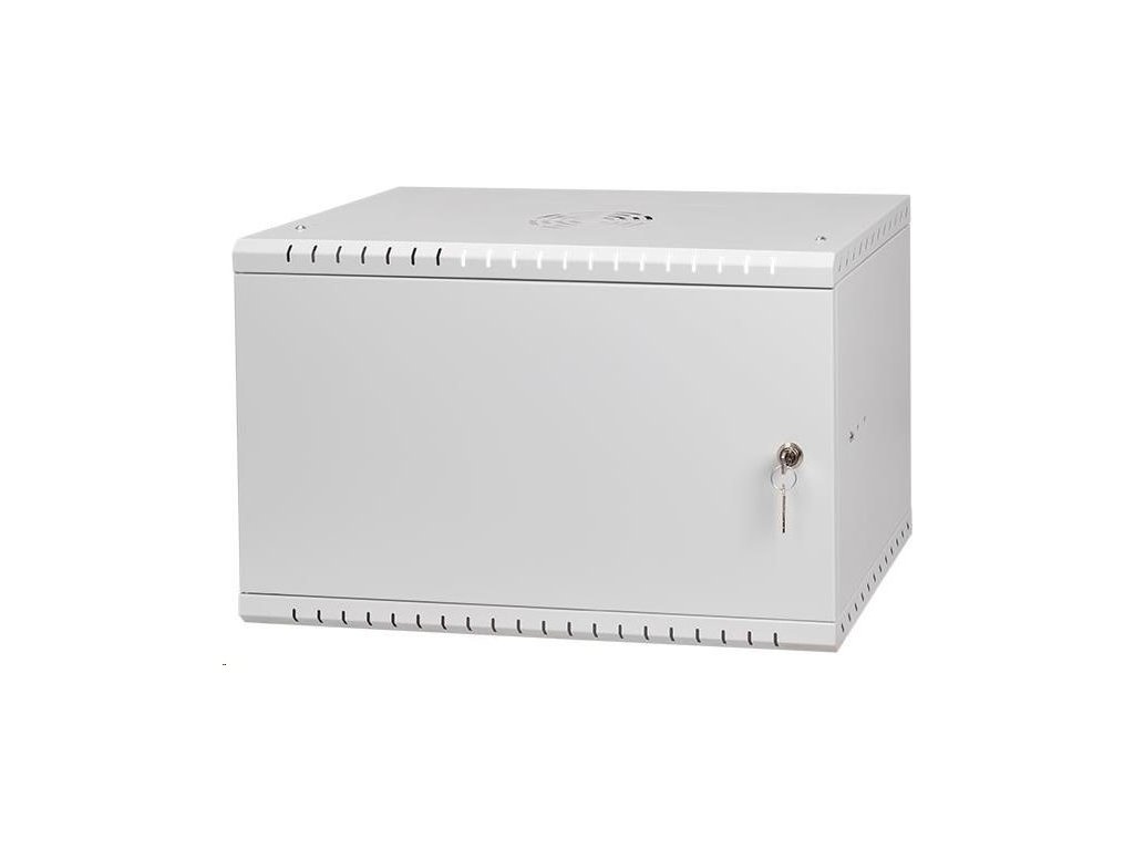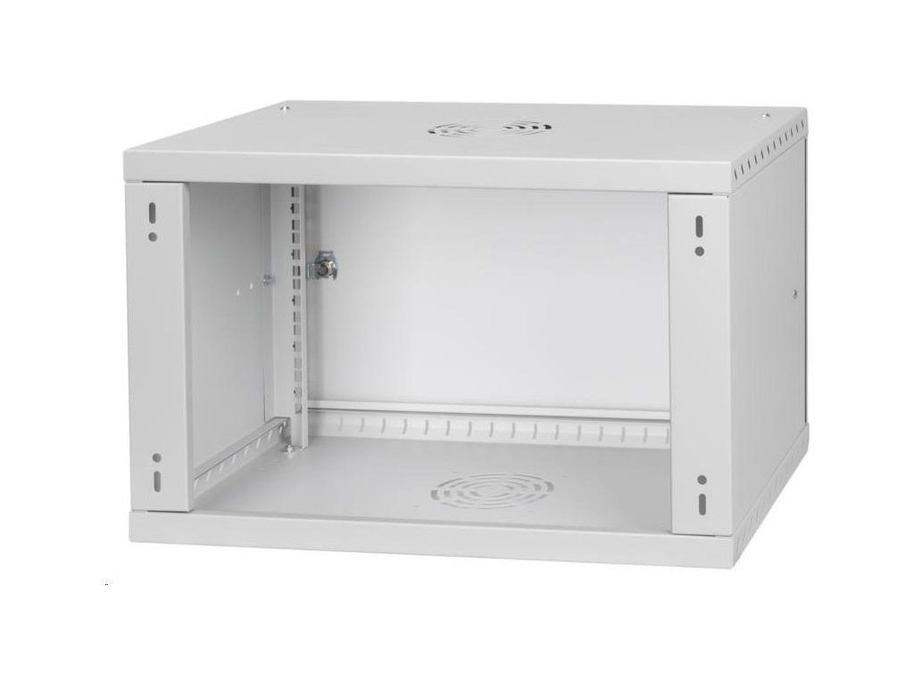 LEXI 19" nástenná skriňa Basic 6U, šírka 520 mm, hĺbka 450 mm, kovové dvere, bez zadnej steny, sivá