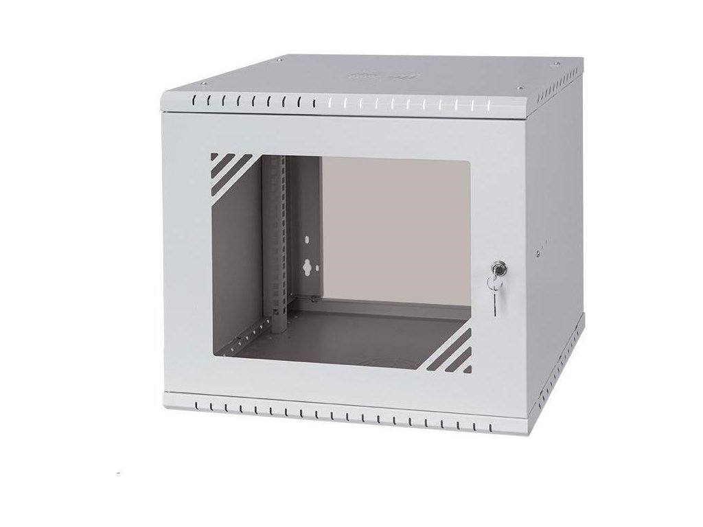 LEXI-Net Basic Nástenný rozvádzač 19" 9U 520x450, sklenené dvere, sivý Štandardne sa dodáva v rozloženom stave Hĺbka 450 mm Farba sivá RAL 7035 Materiál oceľ 0,8 mm s práškovým lakovaním Hmotnosť 8 kg Hmotnosť vrátane balenia 8,5 kg plné kovové dvere Rozmery balenia 495 x 100 x 578 mm Vonkajšie rozmery zmontovaného rozvádzača 525 x 450 x 450 mm Krytie IP20.