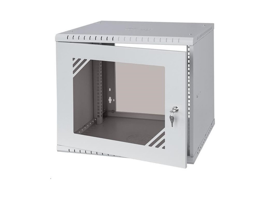 LEXI 19" nástenná skriňa Basic 9U, šírka 520 mm, hĺbka 450 mm, sklenené dvere, bez zadnej steny, sivá