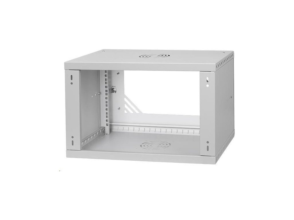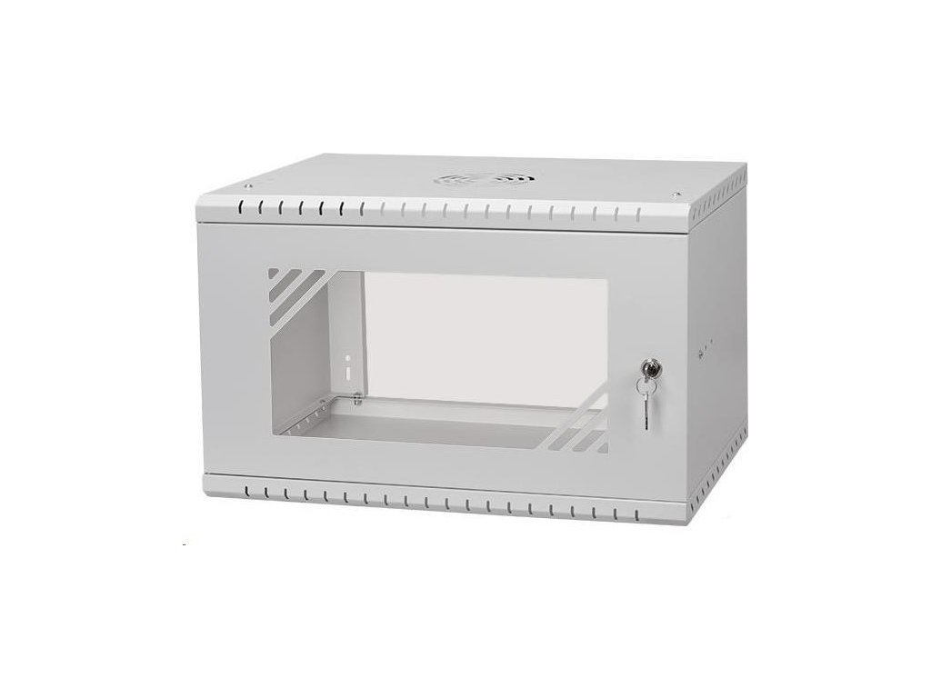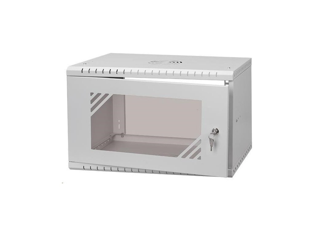 LEXI-Net Basic Nástenný rozvádzač 19" 6U 520x350, sklenené dvere, sivý Štandardne sa dodáva v rozloženom stave Hĺbka 350 mm Farba sivá RAL 7035 Materiál oceľ 0,8 mm s práškovým lakovaním Hmotnosť 5 kg Hmotnosť vrátane balenia 5,31 kg Celokovové dvere Rozmery balenia 400 x 100 x 570 mm Vonkajšie rozmery zmontovaného rozvádzača 520 x 330 x 350 mm Krytie IP20.