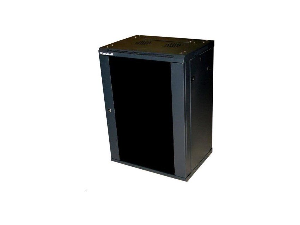 XtendLan 19" nástěnný rozvaděč 12U 600x450, nosnost 60 kg, skleněné kouřové dveře, rozložený, černý