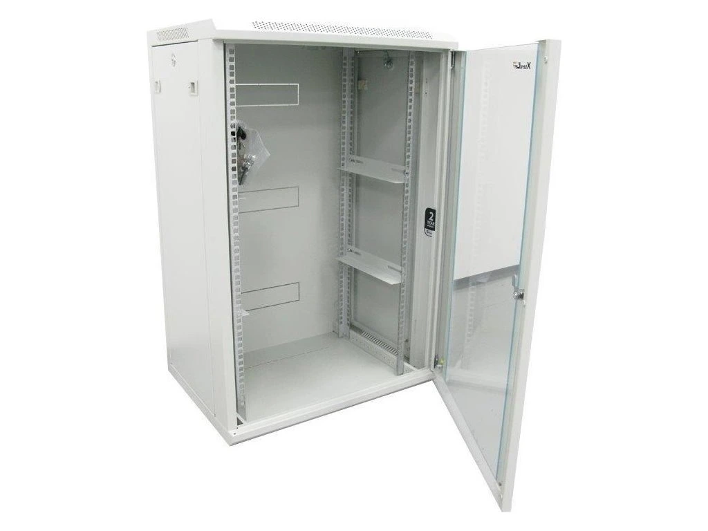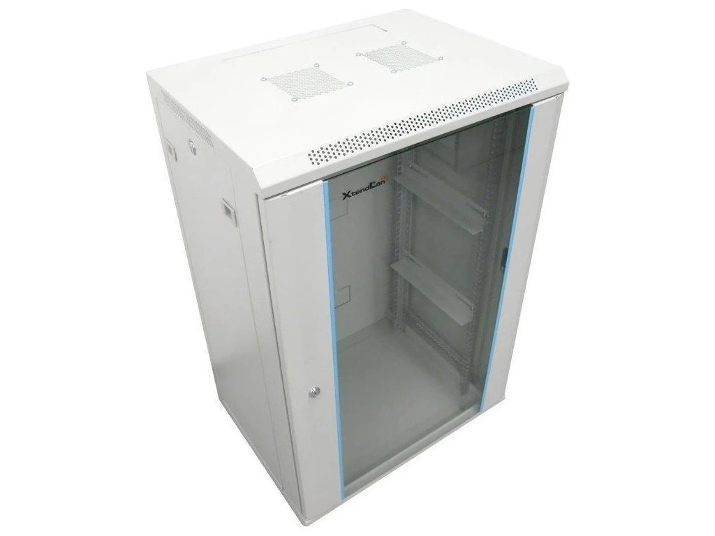 XtendLan 19" nástěnný rozvaděč 22U 600x600, nosnost 60 kg, skleněné kouřové dveře, svařovaný, šedý