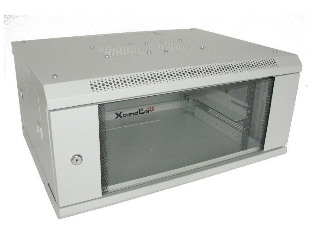 XtendLan 19" nástěnný rozvaděč 4U 600x450, nosnost 60 kg, skleněné dveře, svařovaný, šedý