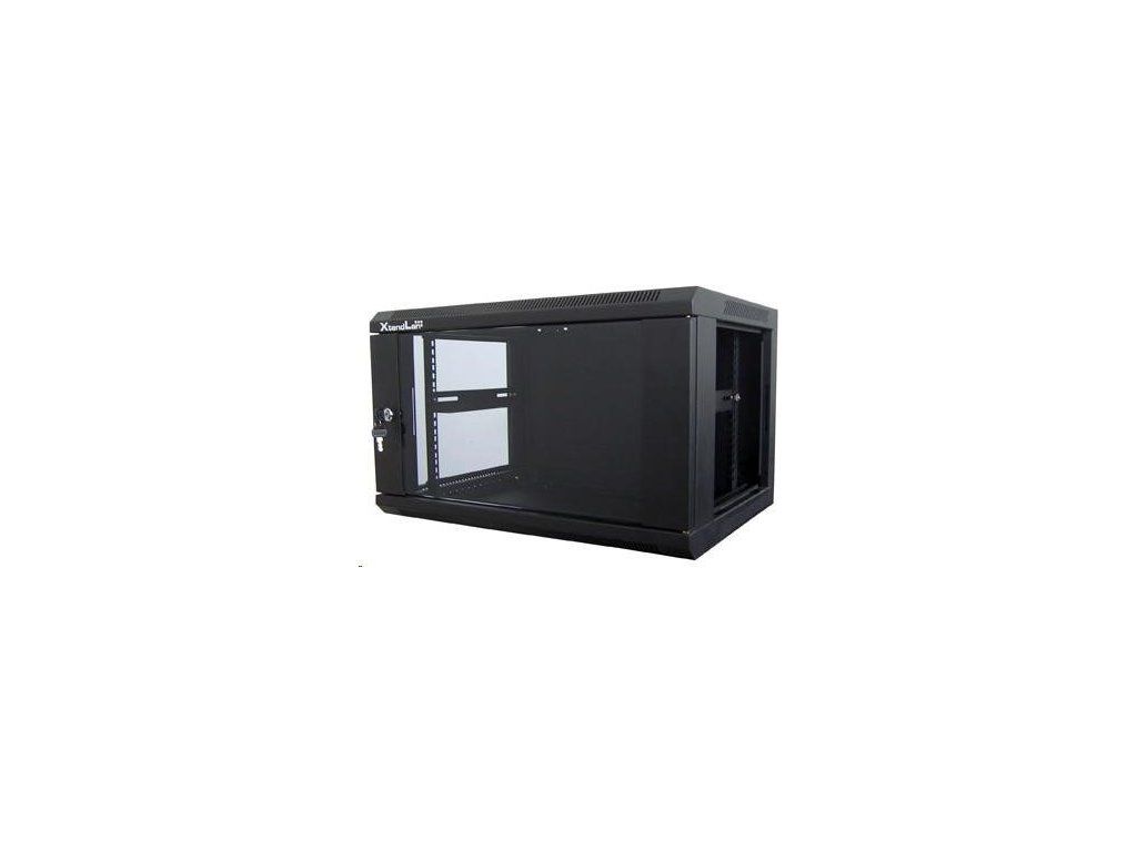 XtendLan 19" nástěnný rozvaděč 6U 600x450, nosnost 60 kg, skleněné kouřové dveře, svařovaný, černý