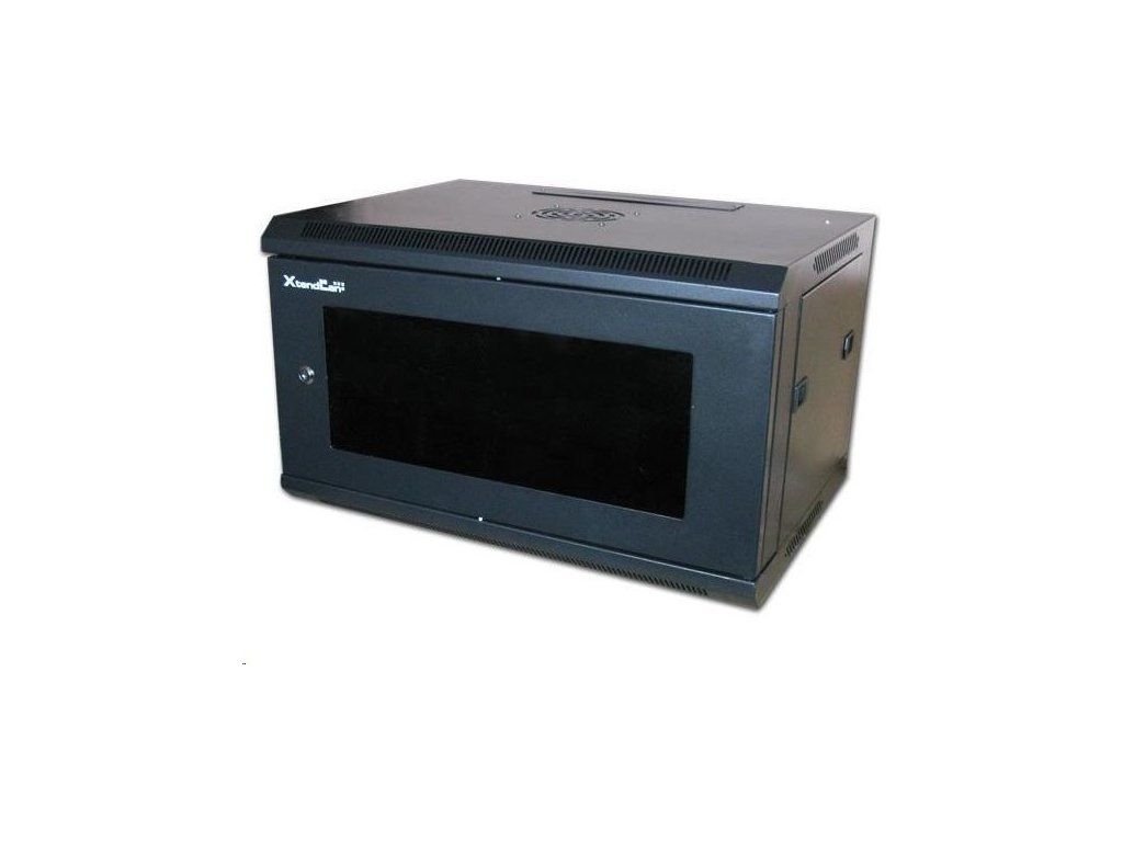XtendLan 19" nástěnný rozvaděč 6U 600x600, nosnost 60 kg, skleněné kouřové dveře, svařovaný, černý