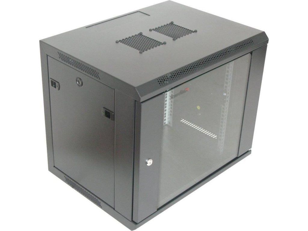 XtendLan 19" nástěnný rozvaděč 9U 600x450, nosnost 60 kg, skleněné dveře, svařovaný, černý