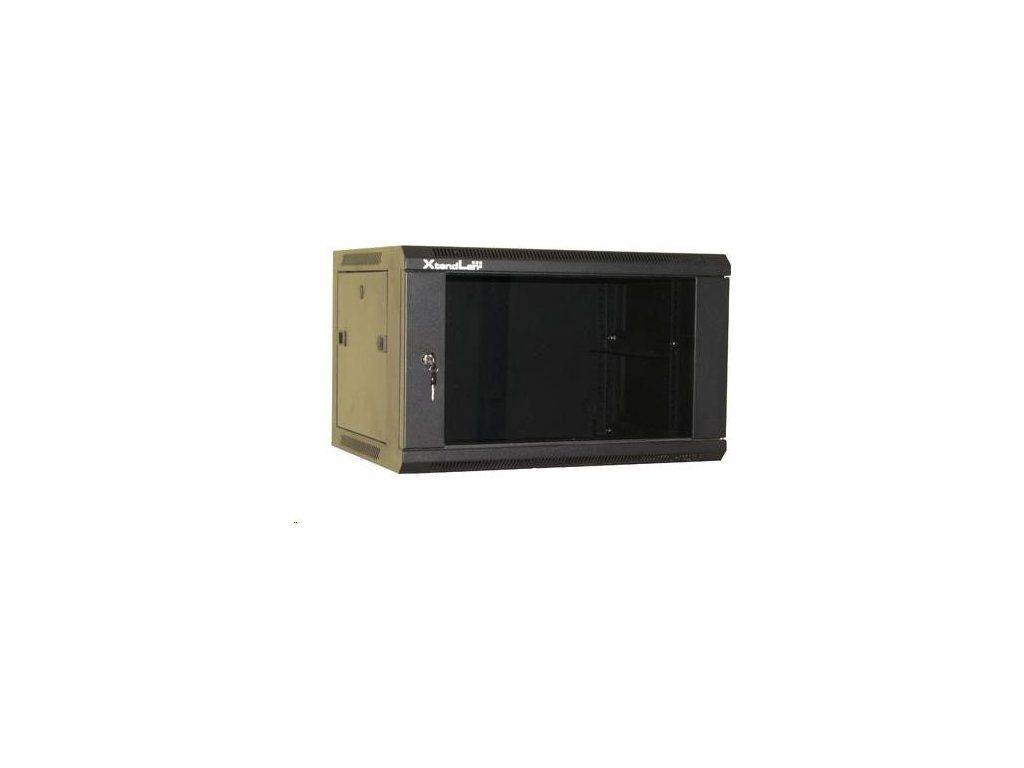 XtendLan 19" nástěnný rozvaděč 9U 600x450, nosnost 60 kg, skleněné kouřové dveře, svařovaný, černý