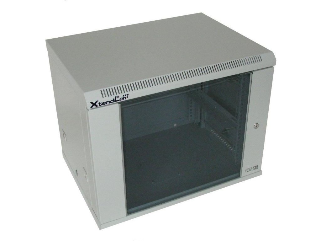 XtendLan 19" nástěnný rozvaděč 9U 600x450, nosnost 60 kg, skleněné kouřové dveře, svařovaný, šedý