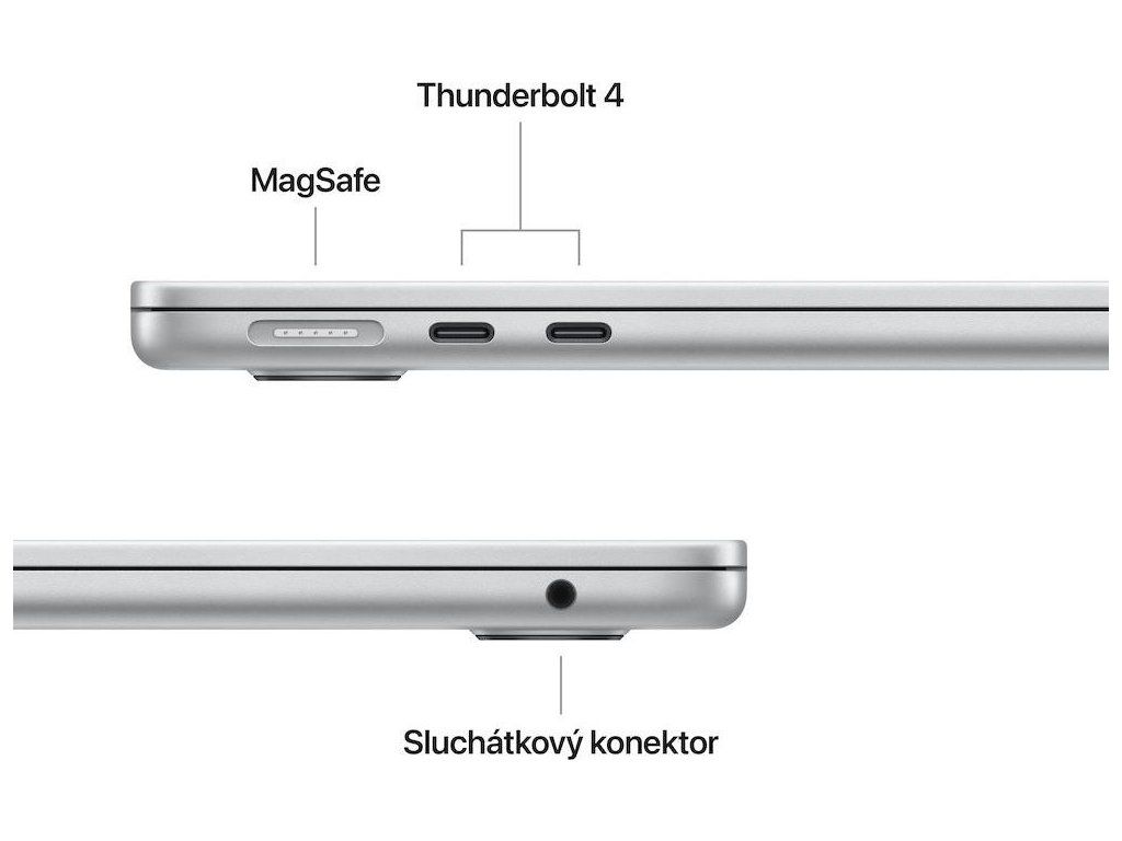 MagSafe nabíjací kábla sa pripája a drží pomocou magnetov. A keď naň omylom zakopneš, uvoľní sa, takže si počítač nespadne na zem. Dva porty Thunderbolt 4 sú vhodné na pripojenie vysokorýchlostných doplnkov a napájania Macu. Slúchadlový konektor podporuje vysokoimpedančné slúchadlá. A Wi-Fi 6E má až dvojnásobnú priepustnosť v porovnaní s Wi-Fi 6. Pripoj si k MacBooku Air až dva externé monitORTY, aby si mal dokonalú pracovnú stanicu s množstvom priestoru, kde práca s viacerými dokumentami alebo aplikáciami len tak sviští.