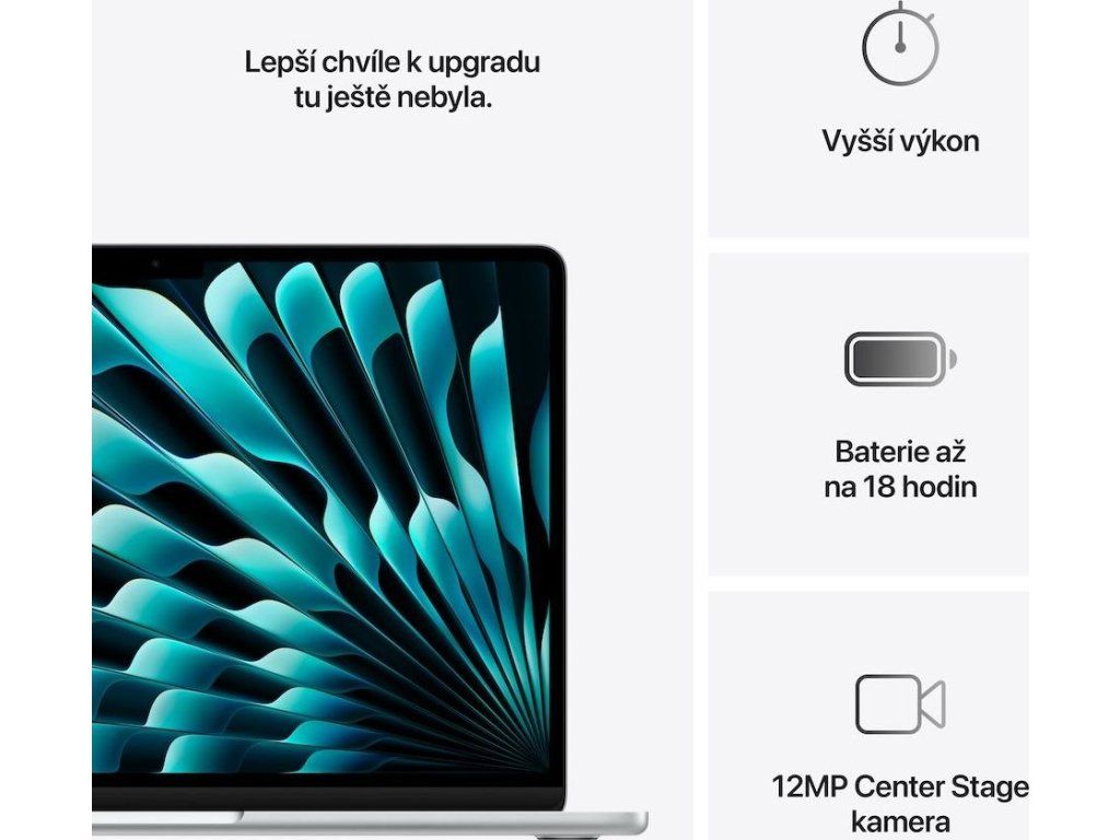 Neuveriteľne ľahký a len asi centimeter tenký MacBook Air sa ľahko prispôsobí tvojmu dynamickému životnému štýlu – a v taške o ňom ani nevieš. MacBook Air má viac než 50percentný podiel recyklovaných materiálov a odolný povrch z recyklovaného hliníka. S čipom M4 dáva všetkému, čo robíš, väčšiu rýchlosť a plynulosť. Či preskakuješ medzi množstvom aplikácií a záložiek, striháš videá, alebo hráš hry. A pracuje v úplnej tichosti, pretože sa obejde bez ventilátora.