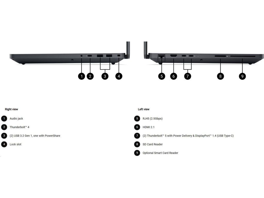 | 6 cell, 96Whr, ExpressCharge™ Capable, standard battery, 280W AC adapter, USB Type C |