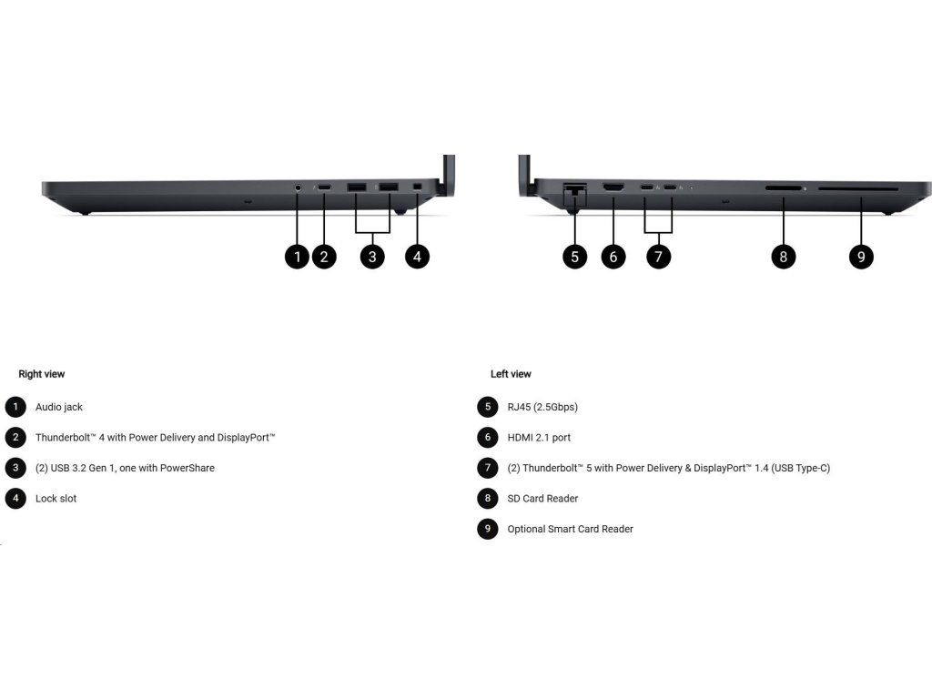 | 6 cell, 96Whr, ExpressCharge™ Capable, standard battery, 280W AC adapter, USB Type C |