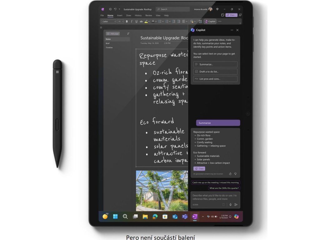 to všetko zabalené vo flexibilnom dizajne, ktorý kombinuje prenosnosť tabletu a výkon notebooku. Počítače s operačným systémom Windows 11 Pro Copilot+ boli špeciálne navrhnuté pre pokročilé riešenia umelej inteligencie, vďaka ktorým bude váš deň efektívnejší a produktívnejší.