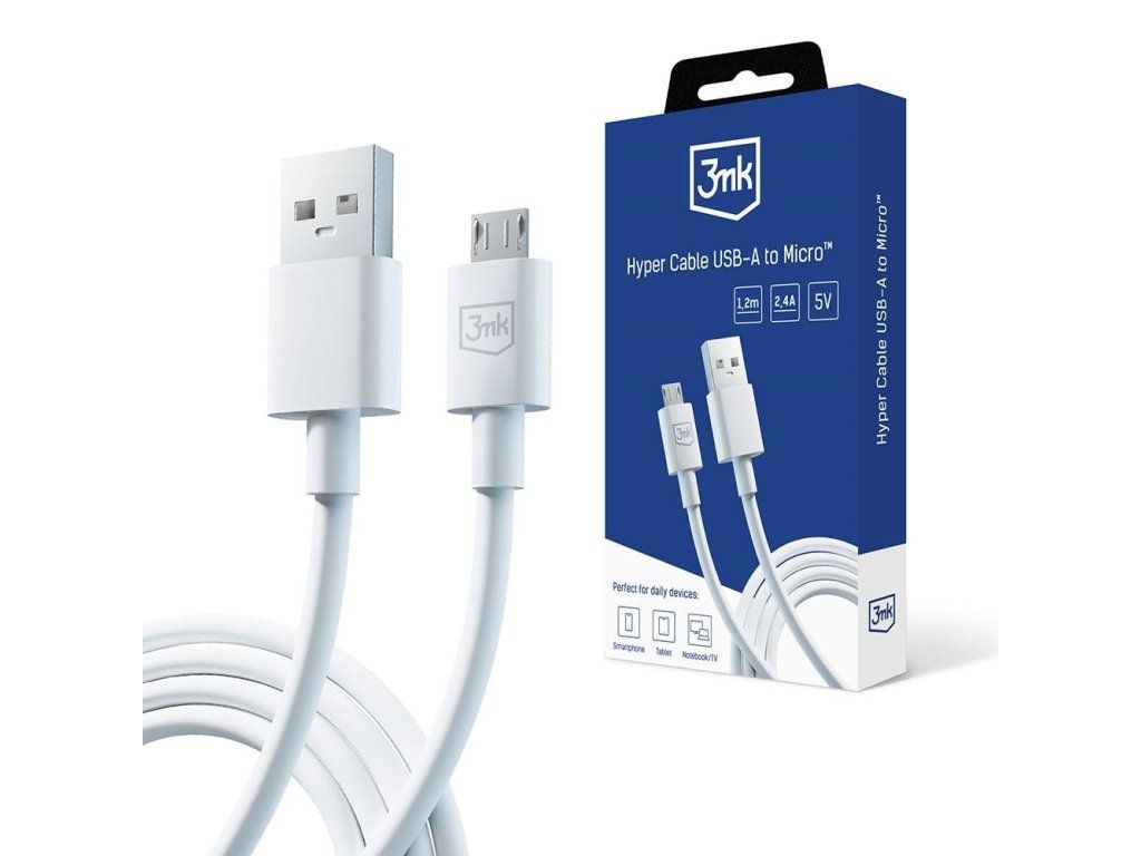3mk datový kabel - Hyper Cable A to Micro 1.2m 5V 2,4A, bílá