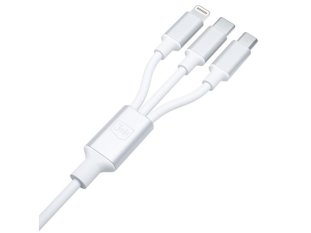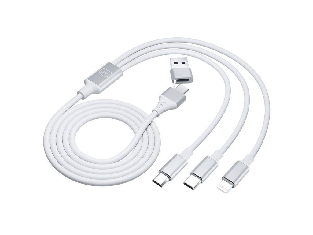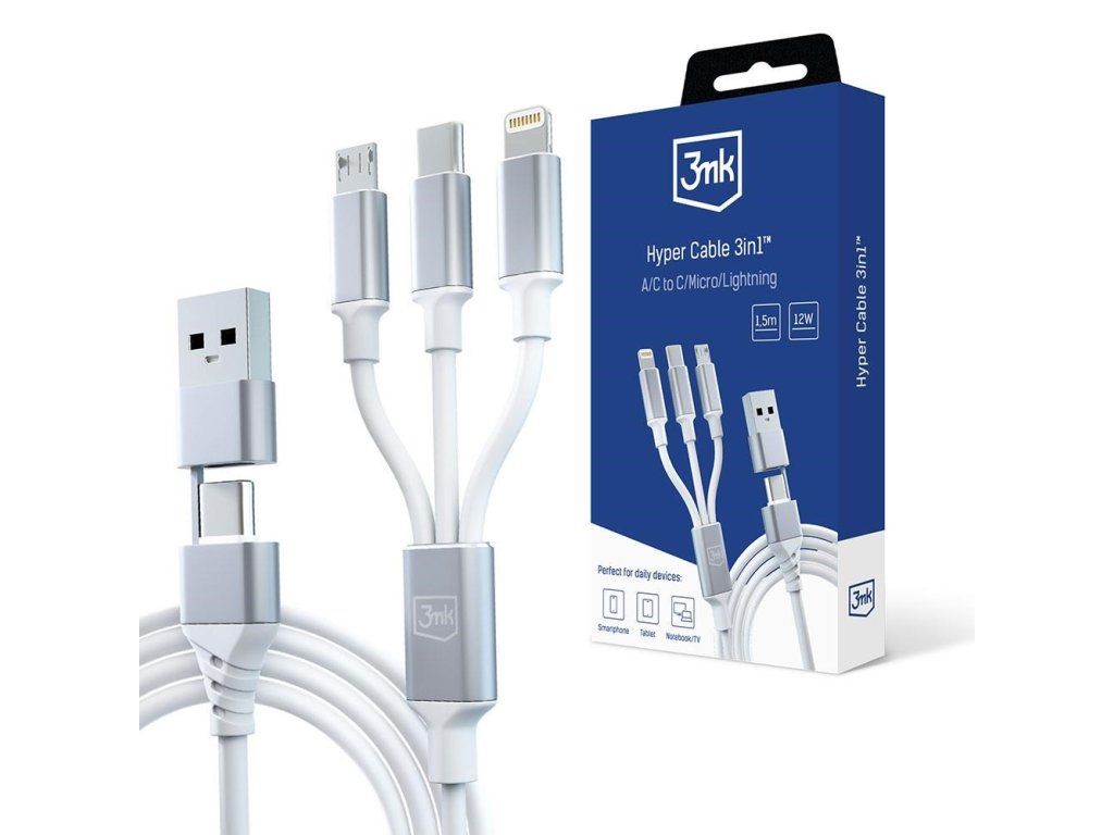 3mk nabíjecí kabel - Hyper Cable 3in1 A/C to C/Micro/Lightning 1.5m, bílá