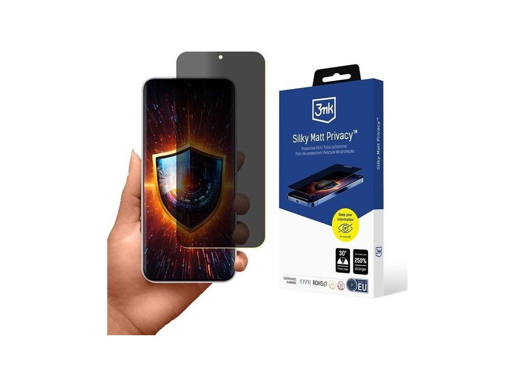 Fólia na ochranu súkromia 3mk Silky Matt Privacy™ je určená pre používateľov smartfónov, ktorí chcú mať súkromie a pohodlie pri používaní telefónu na verejných miestach. Vďaka použitiu filtra na ochranu súkromia je obsah zobrazený na displeji účinne chránený pred zvedavými pohľadmi okoloidúcich. Obraz je rozmazaný a ztmavený pod uhlom 30°. Nikto z okoloidúcich neuvidí, čo práve robíte na svojom smartfóne. Dôverné informácie si ponecháte pre seba.