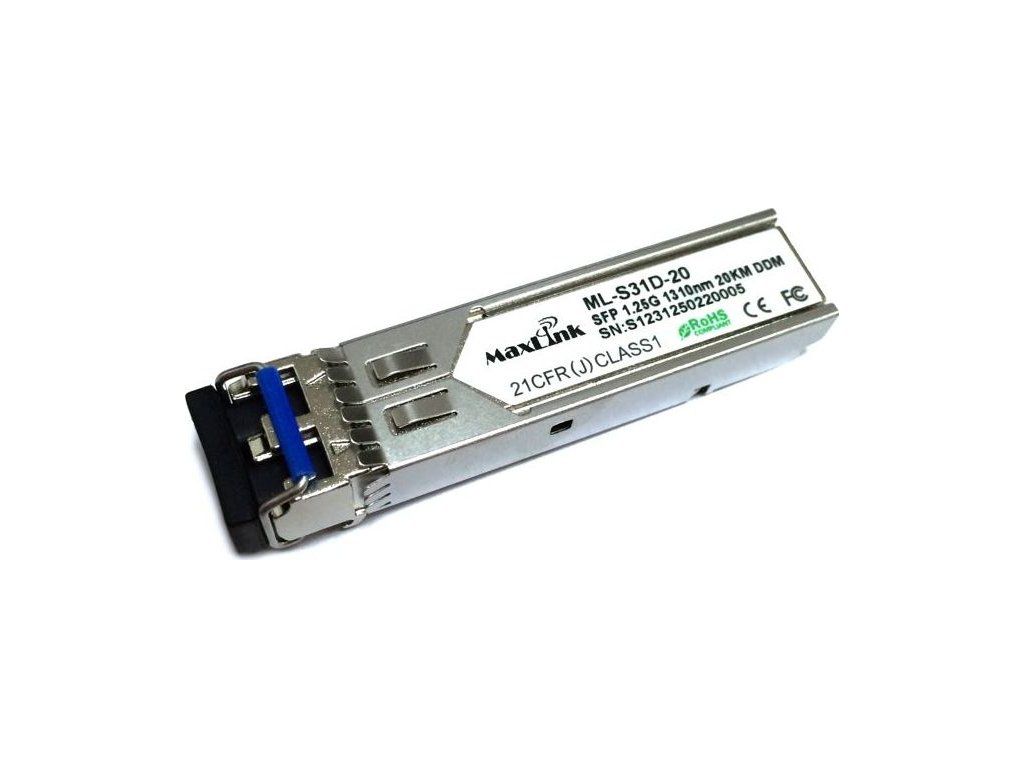 ML-S31D-20 je 1.25G SFP modul s 1310nm vlnovou délkou, dvěmi LC konektory a maximální vzdáleností 20km po singlemode optickém vlákně. SFP modul podporuje monitoring, neboli DDM funkci.