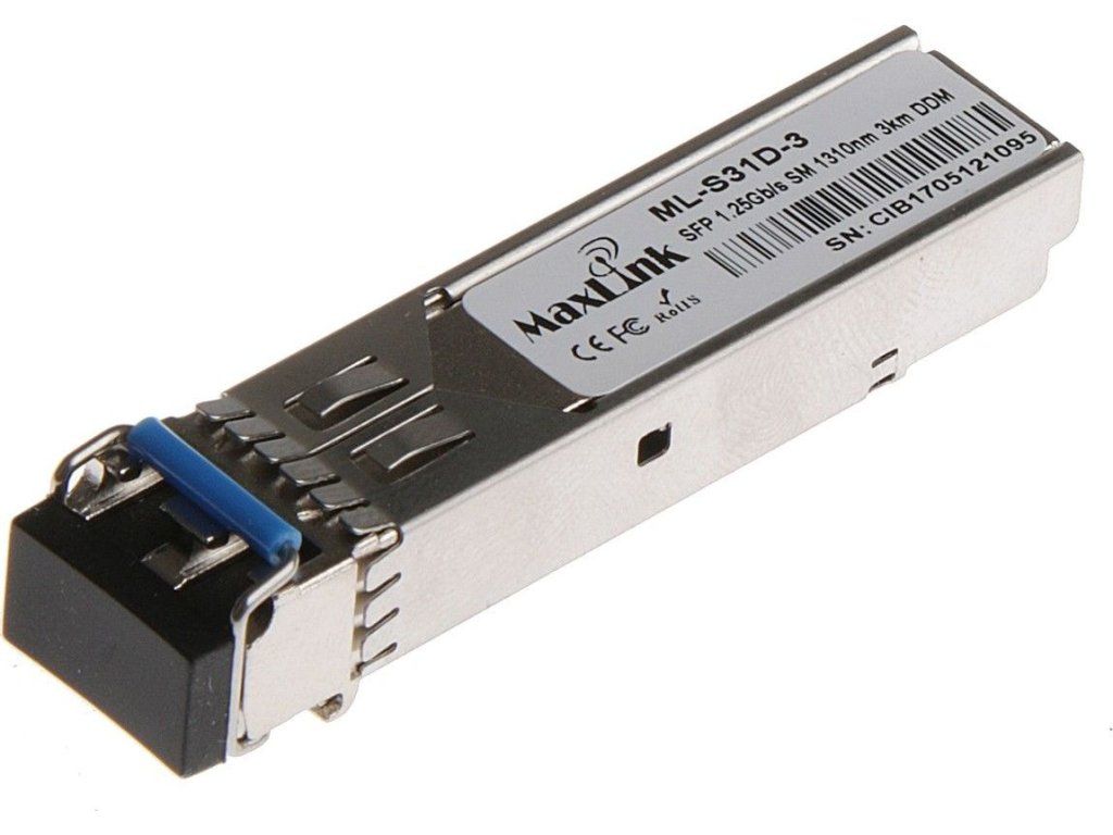 ML-S31D-3 je 1.25G SFP modul s 1310nm vlnovou délkou, dvěmi LC konektory a maximální vzdáleností 3km po singlemode optickém vlákně. SFP modul podporuje monitoring, neboli DDM funkci.