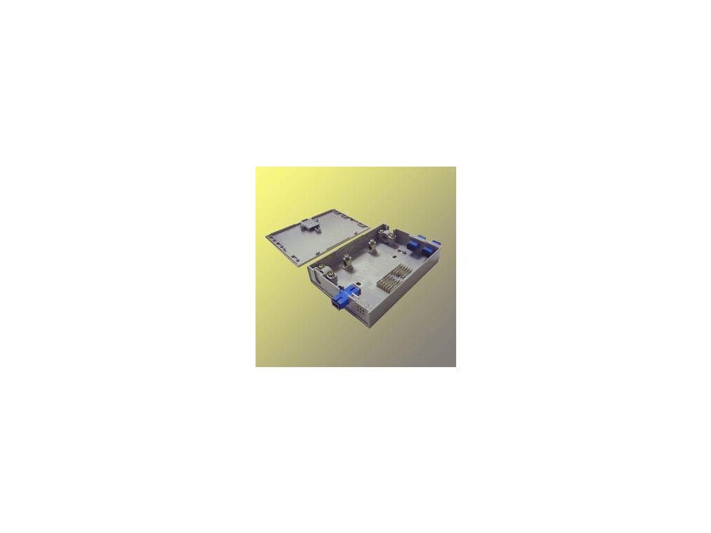 Malý plastový rozvaděč pro odbočkování z hlavního vedení. Umístění 6-ti svarků, 1x průchozí kabel hlavního vedení, 4 výstupní porty. Výstupní porty lze osadit adaptéry pro SC simplex, E2000 a duplexní LC asoučástí je adaptér pro pigtail kabely (6 otvorů,3mm průměr).150x104x27 mm.