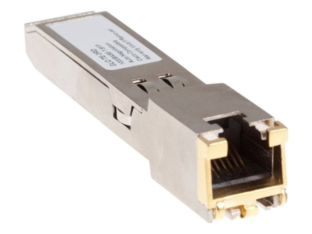 Rozšiřující SFP modul 1000Base-T pro připojení k síti Ethernet. Podporuje přenos dat na vzdálenost až 100 metrů přes měděný kabel typu Cat5e nebo vyšší. Tento modul je ideální pro krátké vzdálenosti v rámci místní sítě (LAN), například pro propojení zařízení v rámci budovy. Rozšířený teplotní rozsah -5 °C až 85 °C.