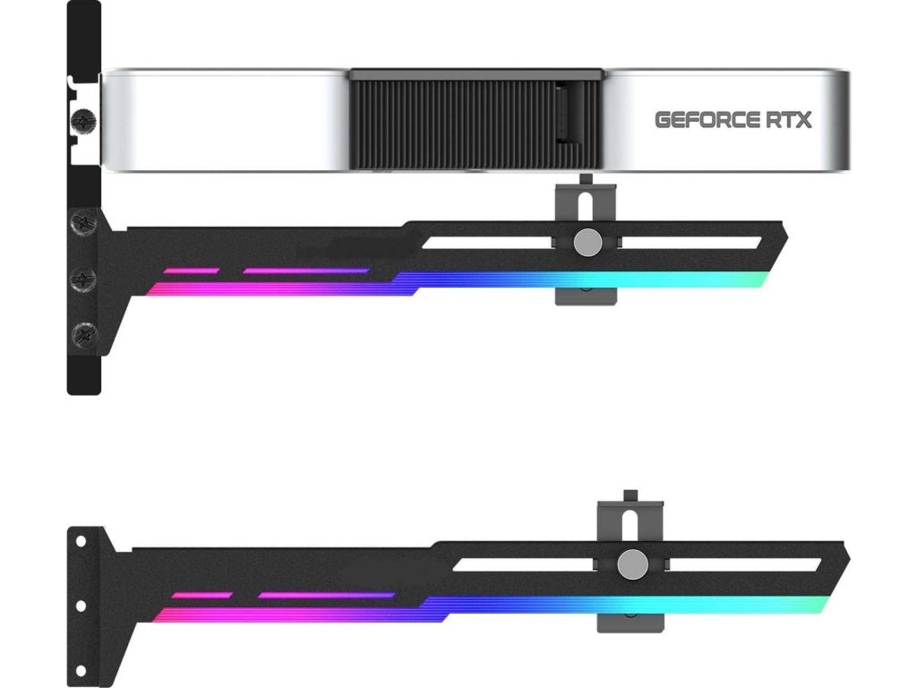 Štýlová varianta tejto opory vašej grafickej karty je vyrobená z oceľového práškového lakovaného plechu a plastu, zabraňuje prehnutiu väčších kariet v slotu a dodáva tak zostave lepšiu celkovú stabilitu. Súčasťou je silikónová posuvná opora, ktorú je možné posunúť horizontálne aj vertikálne a umožňuje inštaláciu na rôznych miestach karty, pre maximálnu kompatibilitu s väčšinou kariet. Rozmery držiaku sú 280 x 52mm.