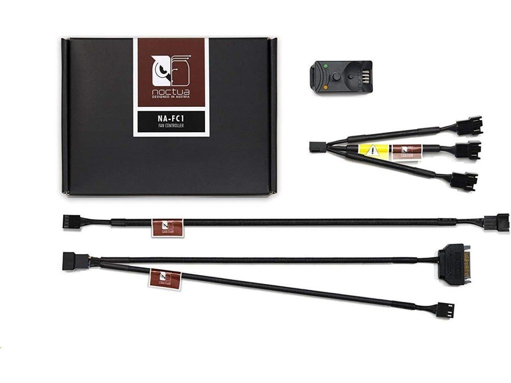 NA-FC1 je kompaktný, vysoko flexibilný regulátor pre 4pinové PWM ventilátory, ktorý môže fungovať samostatne pre ručné zníženie otáčok aj v spolupráci s automatickým riadením ventilátorov na základnej doske. Nastavením ovládacieho gombíka rýchlosti NA-FC1 môžu používatelia buď ručne nastaviť pracovný cyklus PWM od 0 do 100 %, alebo znížiť pracovný cyklus PWM dodávaný základnými doskami počítačov, aby ventilátory bežali pomalšie, než by umožňovalo automatické ovládanie ventilátorov základnou doskou. Zatiaľ čo jas oranžovej stavovej LED diódy poskytuje vizuálnu spätnú väzbu o aktuálnom nastavení otočného ovládača, tlačidlo umožňuje prepnúť NA-FC1 do režimu „bez zastavenia“, čo zabraňuje poklesu otáčok ventilátora pod 300 otáčok za minútu. Vďaka dodávanému 3cestnému rozdeľovaciemu káblu a napájaciemu adaptéru je možné ovládať až 3 ventilátory súčasne.
