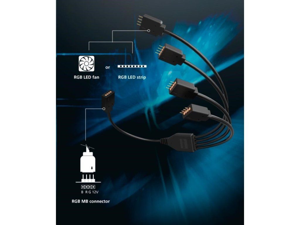 AKASA RGB LED rozbočovač a predlžovací kábel, 1x samica, 4x samec, 50 cm