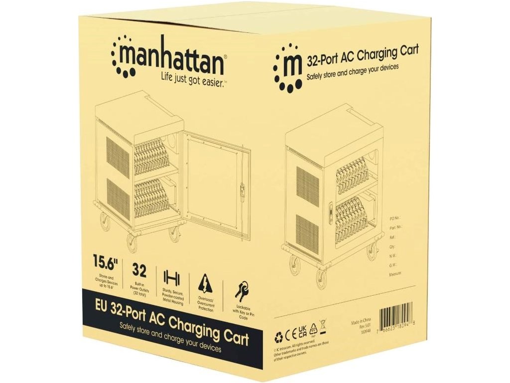 MANHATTAN nabíjecí vozík na notebooky - 32 míst, 32 portů, Až 15,6" - EU Zásuvka