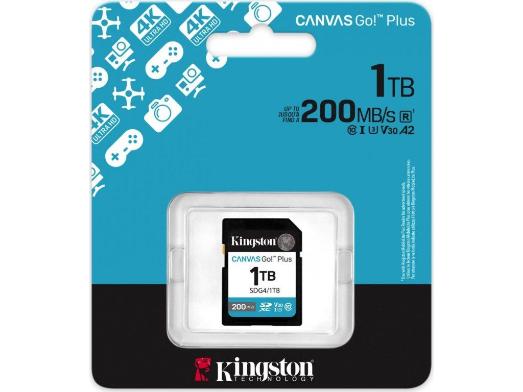 Kingston SDXC karta 1TB Canvas Go! Plus, R:200/W:160MB/s, Class 10, UHS-I, U3, V30