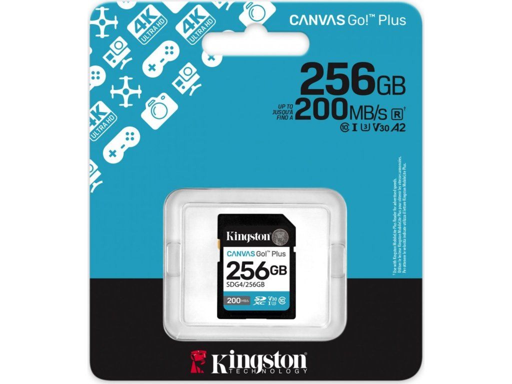 Kingston SDXC karta 256GB Canvas Go! Plus, R:200/W:160MB/s, Class 10, UHS-I, U3, V30
