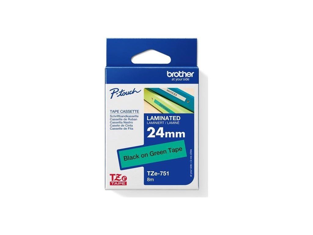 BROTHER TZE751 - TZ kazeta 24 mm široká, laminovaná TZE-751, zeleno-čierne písmo