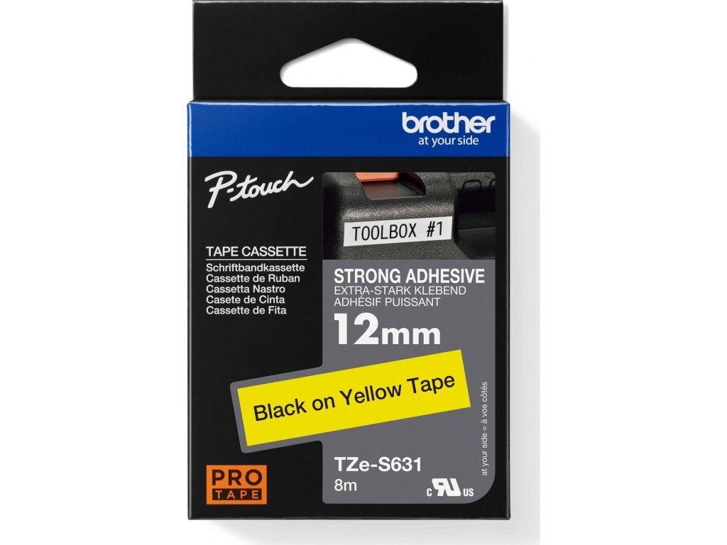 BROTHER TZES631 - kazeta TZ so šírkou 12 mm, extrémne priľnavý laminát TZE-S631, žlté/čierne písmo