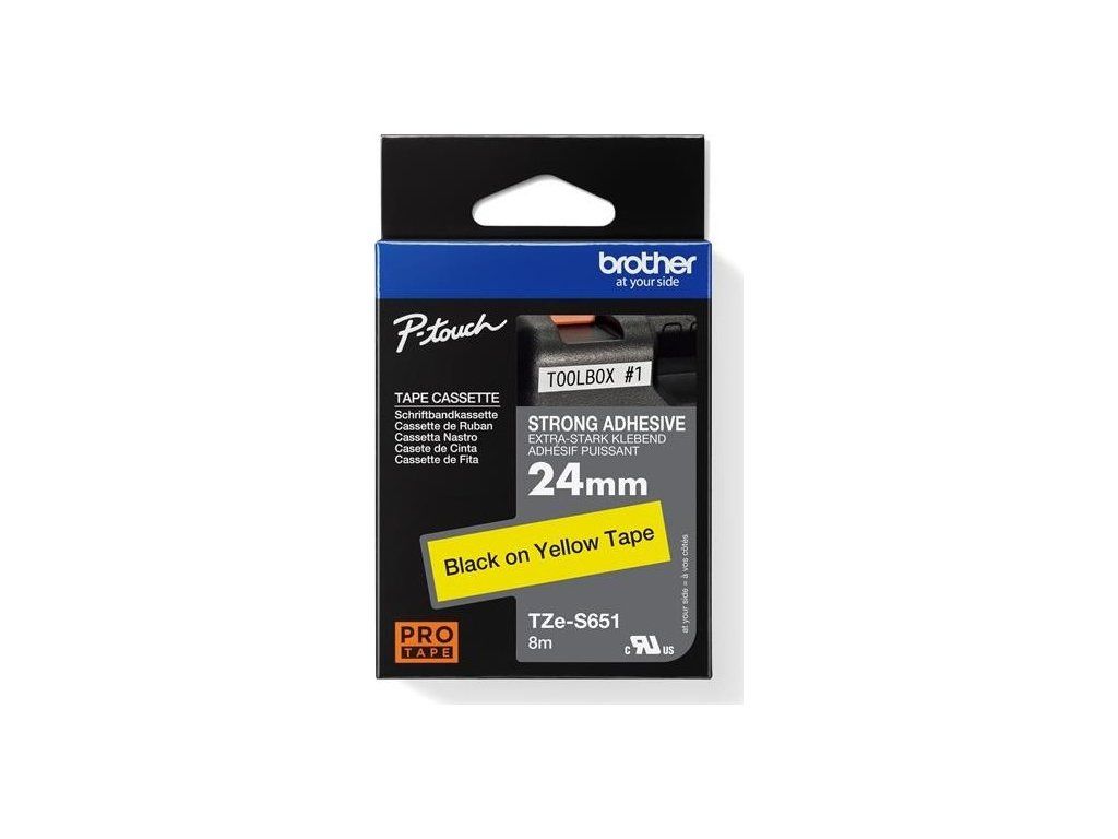 BROTHER TZES651 - kazeta TZ so šírkou 24 mm, extrémne priľnavý laminát TZE-S651, žlté/čierne písmo