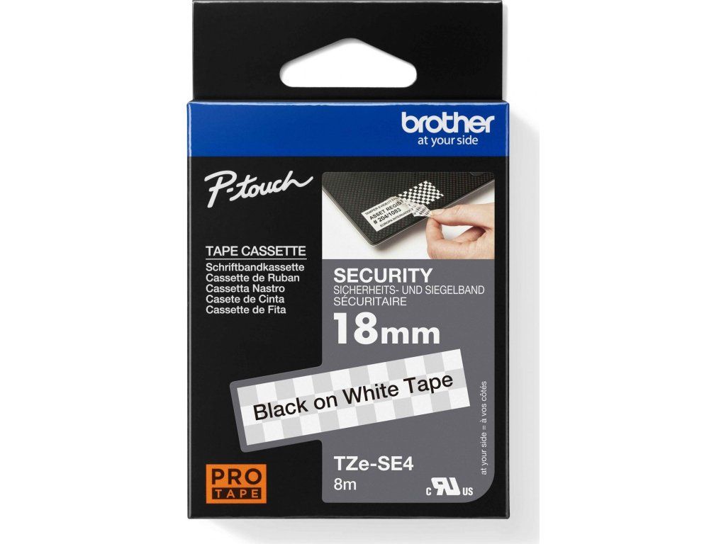 BROTHER TZESE4 Etiketovacie potreby, 18 mm ČIERNA NA BIELEJ BEZPEČNOSTNEJ PÁSKE.