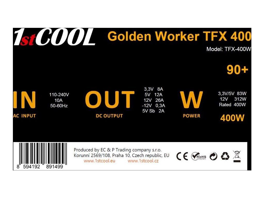 1stCOOL Zdroj Golden Worker TFX 400 88+, 400W, TFX, černá