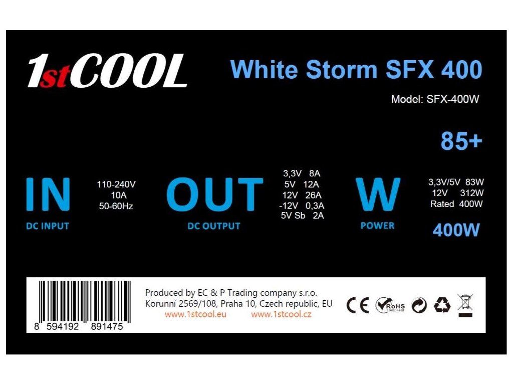1stCOOL Zdroj White Storm SFX 400 85+, 400W, SFX, černá