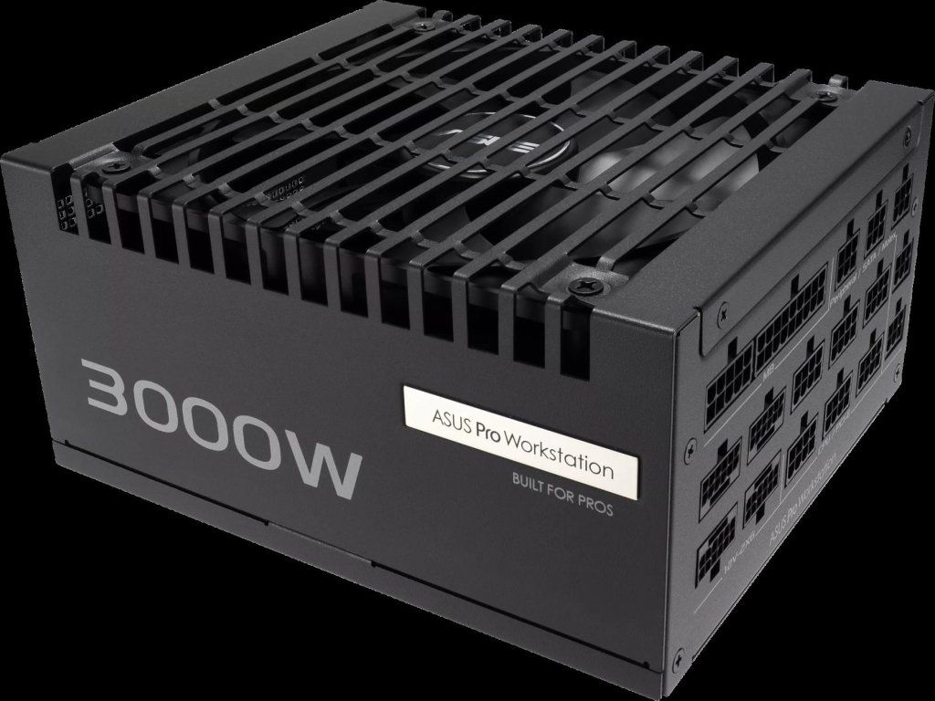 Napájací zdroj ASUS Pro WS 3000W Platinum je navrhnutý tak, aby podporoval až štyri grafické karty GeForce RTX™ 5090. Disponuje tiež certifikáciou 80 PLUS Platinum, vysoko výkonnými meďenými piny, ložiskami ventilátora s dvojitými guličkami, leptanými káblami, pevnou stabilitou napätia a pokročilým napájaním, čo z neho robí ideálnu voľbu pre riešenia AI, hlboké učenie a správu IT.