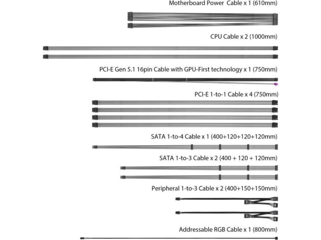 | PCIe 12+4pin Konektor | 1x / 1x (750mm) |