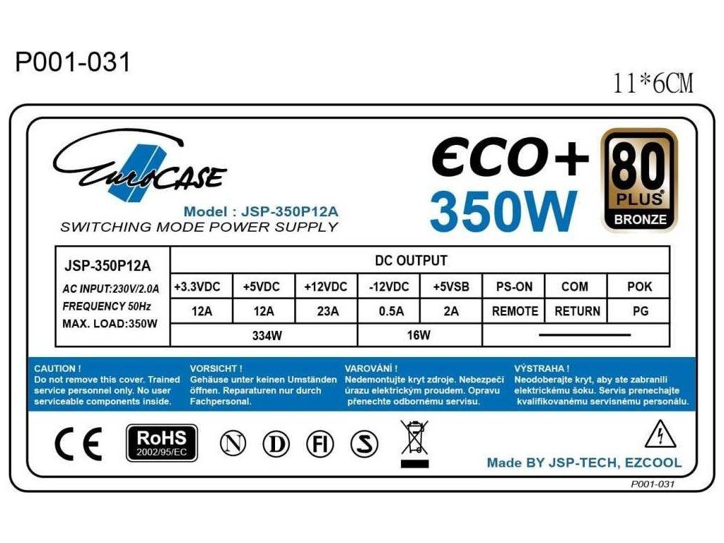 EUROCASE zdroj 350W Eco+, 120mm, 80+ Bronze, ATX