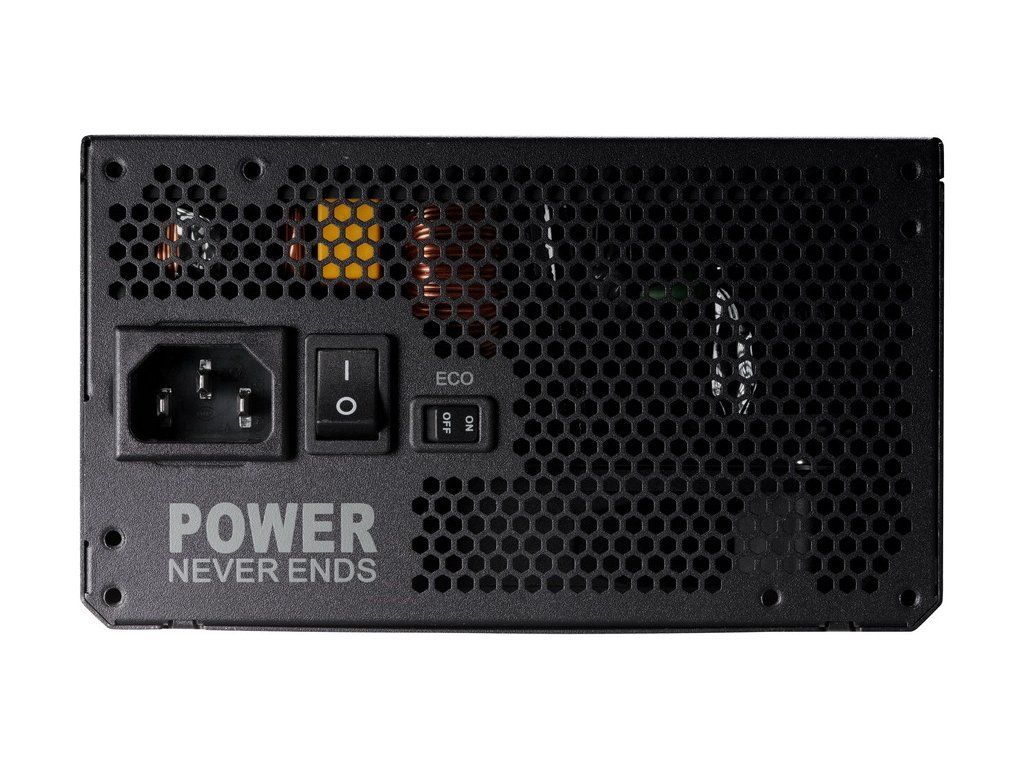 Vypínač „Eco Switch“ umožňuje zdroji pracovat tišeji a s nižší spotřebou energie. Pokud je zatížení zdroje menší než 40 %, zdroj přejde do tichého módu a ventilátor se vypne.