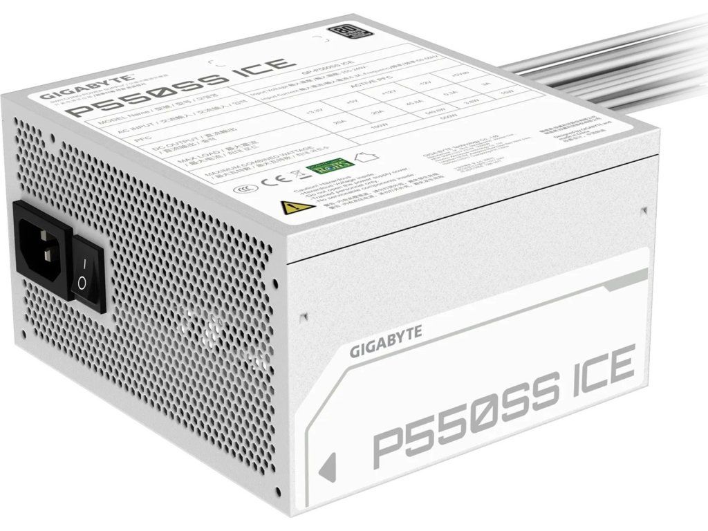 GIGABYTE zdroj P550SS ICE, 550W, 80+ Silver, 120mm, ATX 3.0, bílá