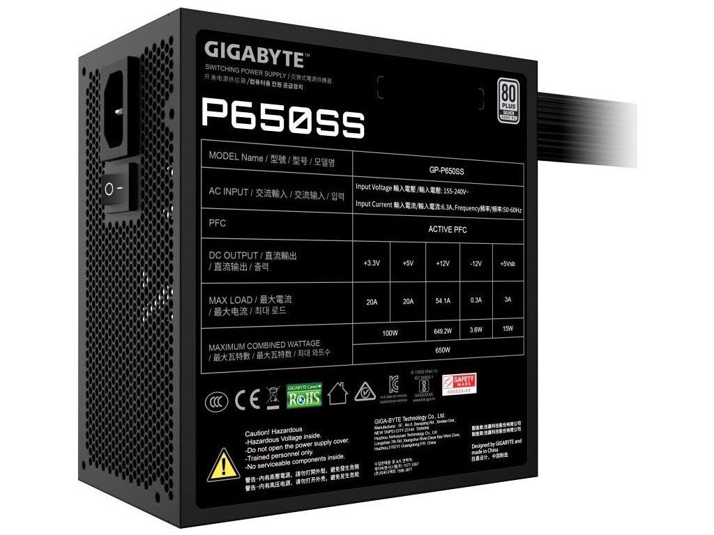 GIGABYTE zdroj P650SS, 650W, 80+ Silver, 120mm, ATX 3.0, černá
