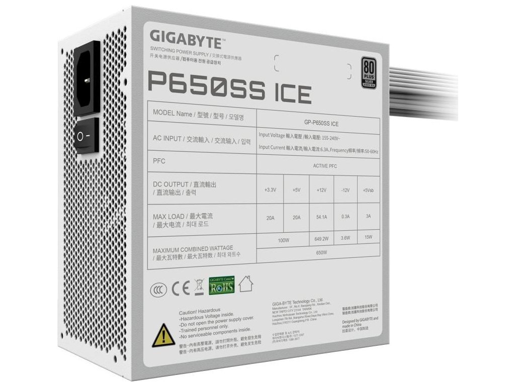GIGABYTE zdroj P650SS ICE, 650W, 80+ Silver, 120mm, ATX 3.0, bílá
