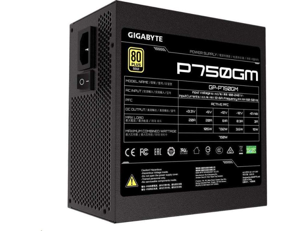 GIGABYTE zdroj P750GM, 750W, 80plus gold, modular, 120 mm fan