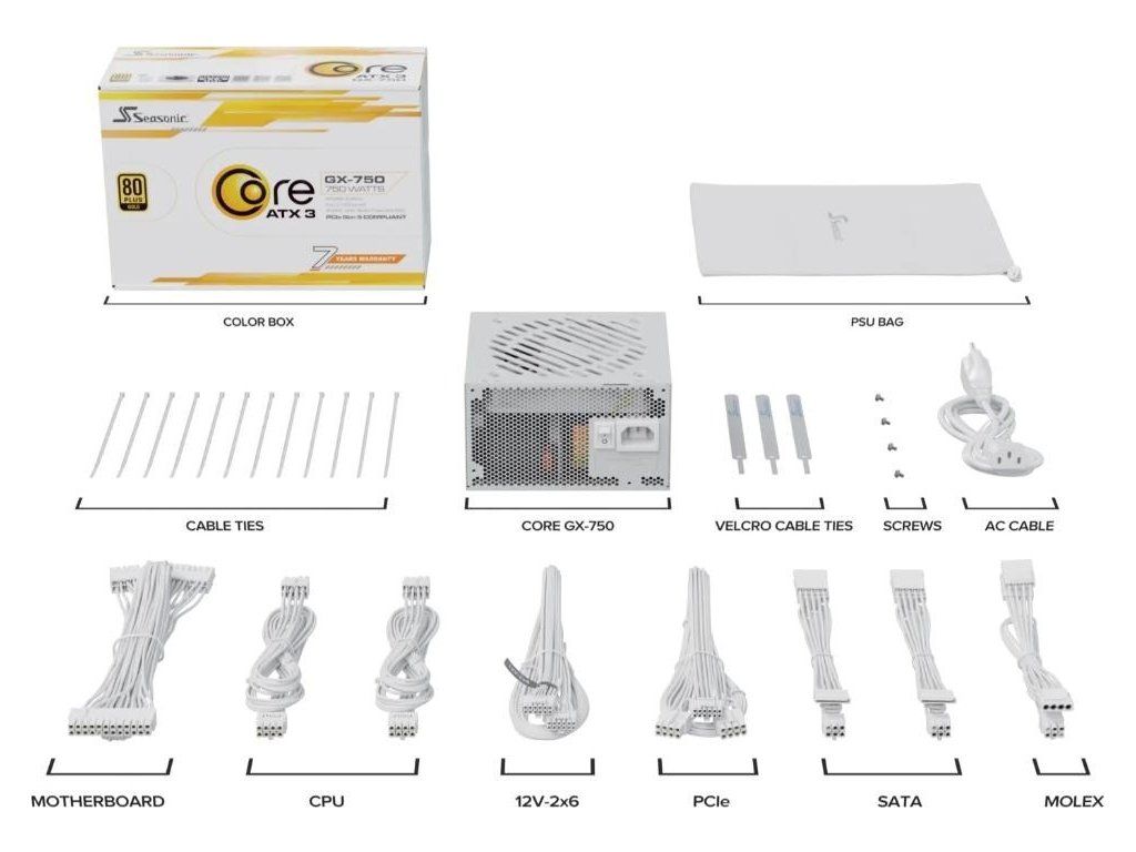 SEASONIC zdroj Core GX 750W White, 120mm, Plně modulární, 80+ Gold, ATX 3.1