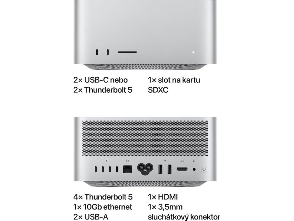 * 2x Thunderbolt 5 (USB-C) s přenosovou rychlostí až 120Gb/s